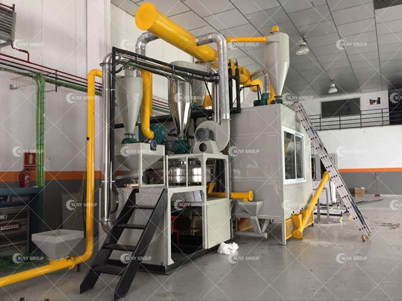 Electrostatic separation: The core of the process lies in electrostatic separation. The ground material passes through an electrostatic field, and the conductive aluminum particles are attracted to the charged rollers, while the non-conductive plastic particles are transferred to a separate collection area. This step ensures a high-purity separation of the two materials.